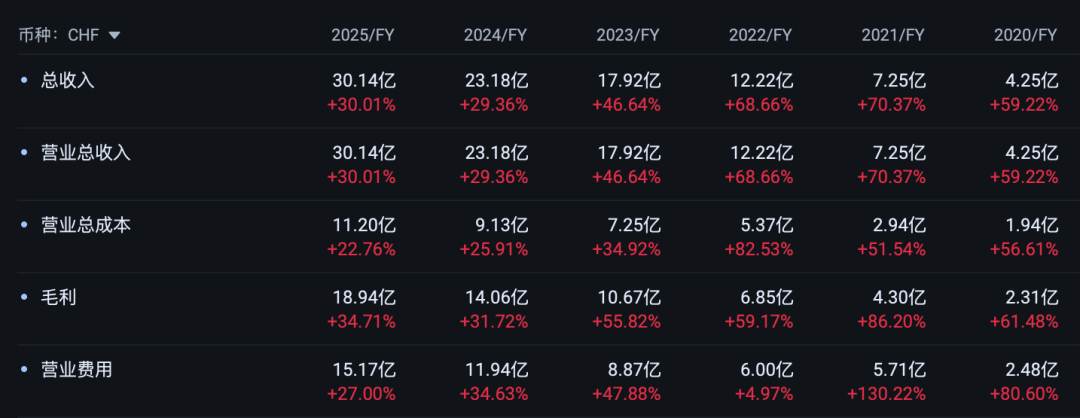 这家成立不到16年的瑞士品牌,在2020年至2025年间,营收从4.25亿瑞士法郎猛增至30.14亿瑞士法郎,增幅超过600%。